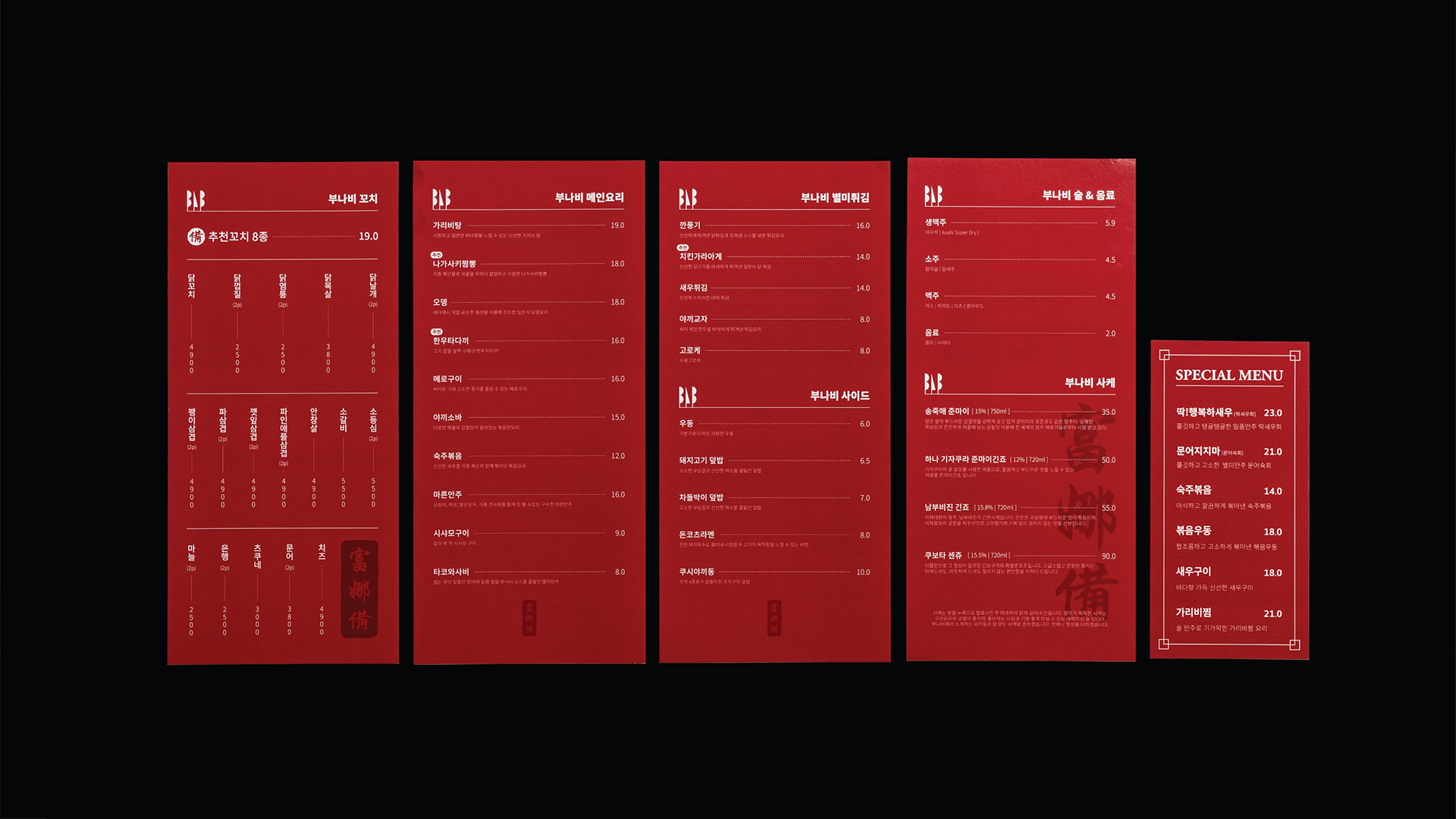 부나비가 준비한 따뜻한 공간과 맛있는 음식으로 행복하게 하루를 마무리해보세요.